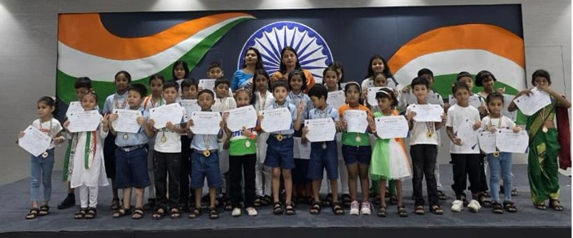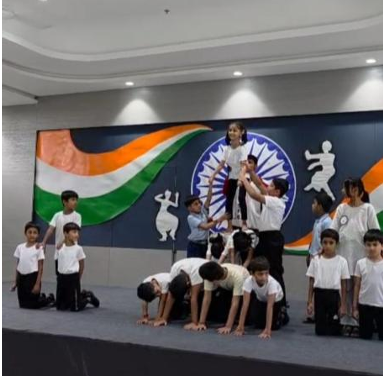 Nrityanova was a vibrant inter-grade dance competition celebrating India’s rich cultural heritage. Students from Grades 1 to 5 performed classical and folk dances representing different states. The event encouraged confidence, coordination, and teamwork among students. Performances were judged by a professional dance expert. A patriotic speech inspired the audience and participants. The pyramid formation symbolized unity and strength. The programme successfully showcased talent and national pride.