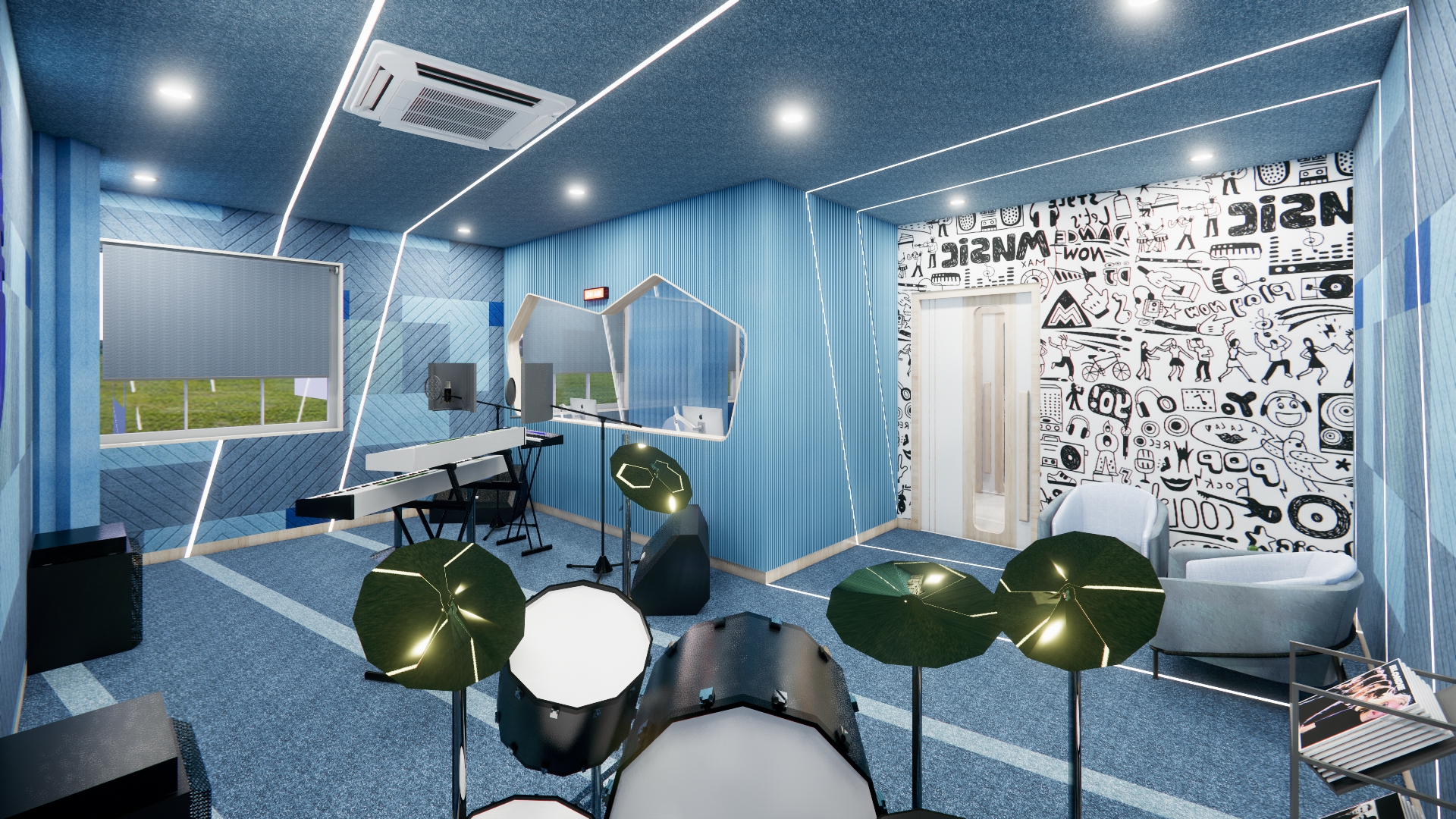 Our one-of-a-kind music studio, serves as a musical hub for our students, well-equipped with guitars, pianos and djembes for every student.