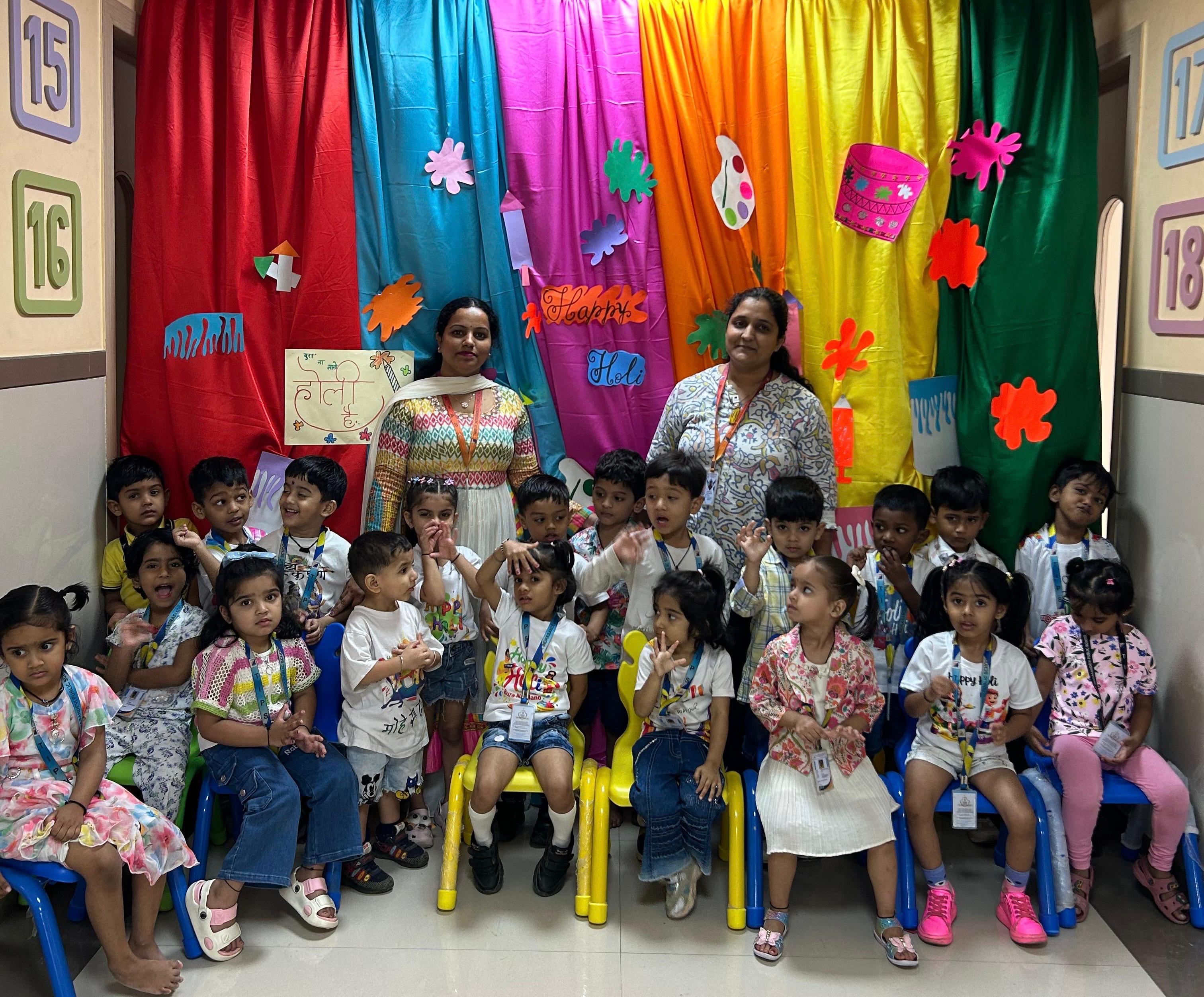 The Pre-Primary section celebrated the vibrant festival of Holi with great enthusiasm and joy, creating a lively and cheerful atmosphere across the campus. The celebration was thoughtfully organized in a safe and eco-friendly manner, where children joyfully participated using natural colours and rose petals. Beautiful decorations and a festive ambiance further enhanced the spirit of the occasion, making it a delightful experience for the young learners. Teachers guided the students about the cultural significance of Holi and encouraged them to celebrate the festival with happiness, togetherness, and respect for nature. The children actively engaged in the activities, making the celebration lively and memorable. It provided a wonderful opportunity for students to experience the joy of festivals while fostering values of unity, positivity, and environmental awareness.